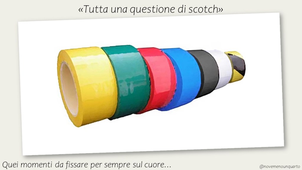 Ritorno velocemente indietro ed infilo in borsa un po’ di scotch, c’è sempre qualche saluto speciale da fissare bene prima di chiudere la porta.