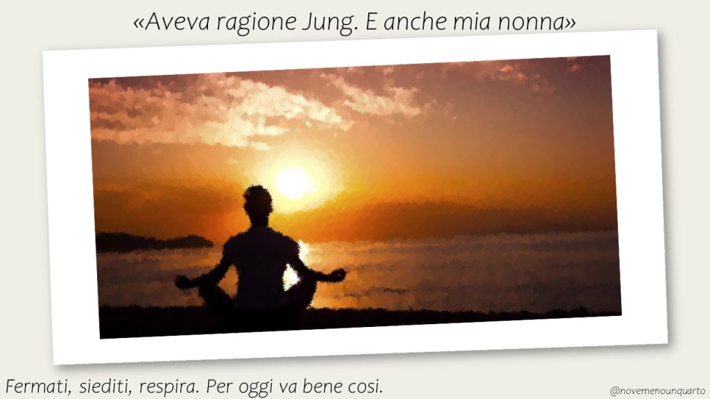 Una frase celebre di Jung recita: “Chi guarda fuori sogna, chi guarda dentro si risveglia”. E allora ha ragione Carl, e forse anche mia nonna. Non smetterò di farmi domande a cui cercare risposte, ma quando mi stancherò di cercarle fuori, forse dovrò solo ricordarmi di fermarmi, chiudere gli occhi e respirare.